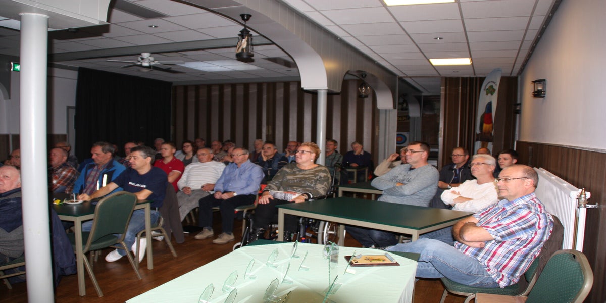 Zorg er ook voor dat je vogels een bezigheid hebben, zoals bv wat takken in de kooi waar ze mee kunnen spelen. Peter gaf ook aan als wij in deze ruimte zoals wij hier zitten diverse dagen moesten blijven en wij geen verdere bezigheden zouden hebben, wij binnen de koste keren vechtpartijen zouden krijgen en zou moet je het zien bij je vogels.Dus geef ze wat te doen, als is het maar een takje trosgierst, ook al hebben ze het zaad ervan afgegeten, dan blijven ze er nog wat mee spelen. Rond kwart over 11 laste Peter even een korte pauze in, omdat sommige liefhebbers met hun ogen begonnen te knipperen als teken van dorst. Hierna begon Peter verder aan zijn interessante lezing, welke hij rond kwart voor 1 afrondde. Peter werd met een applaus bedankt voor zijn duidelijk uitgezette lezing.